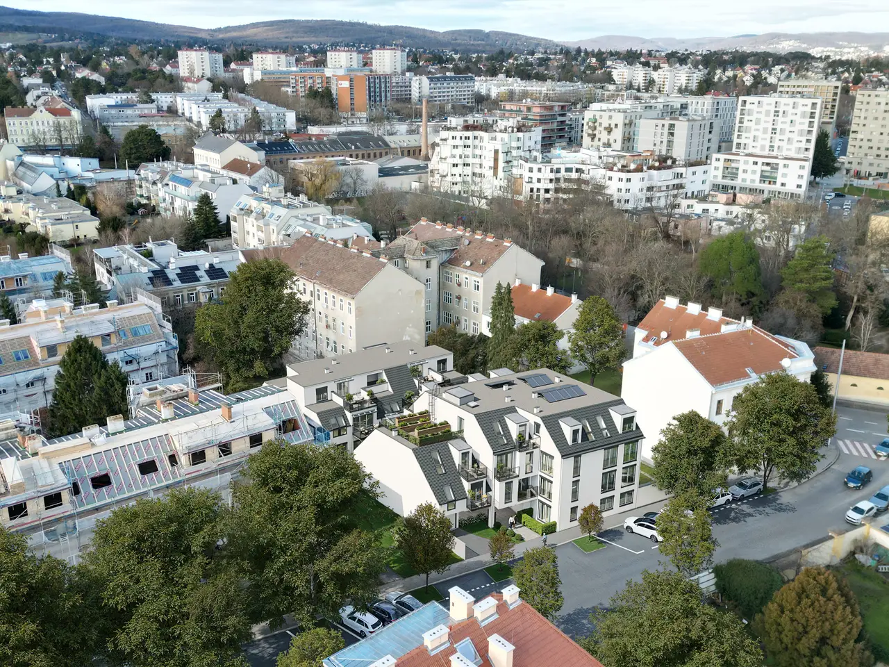 Zwei architektonisch klar gestaltete Baukörper fügen sich harmonisch in das bestehende Ortsbild ein. Das Projekt umfasst 18 Eigentumswohnungen sowie 4 hochwertig integrierte Gewerbeflächen im Erdgeschoss. Die gewählte Projektgröße trägt zu einem ruhigen Wohngefühl und einer nachhaltigen Nachbarschaftsstruktur bei.