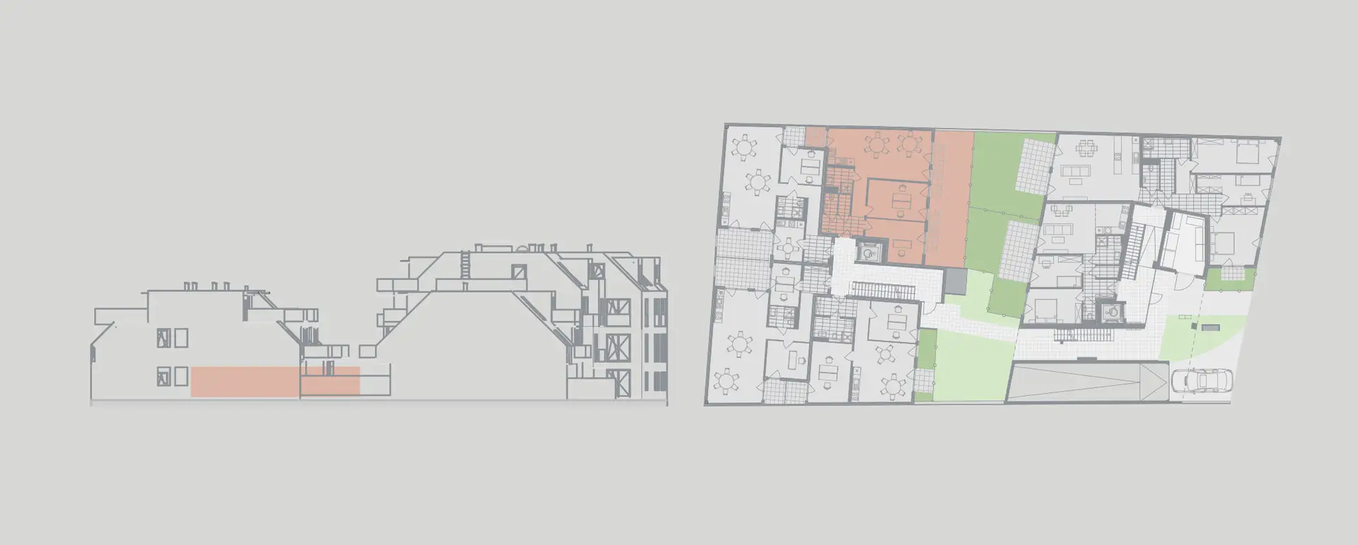 Die Wohnungen reichen von Gartenwohnungen über großzügige Familienwohnungen bis hin zu durchdacht geplanten Dachgeschosswohnungen. Ein Großteil der Einheiten verfügt über private Freiflächen – Eigengärten, Terrassen oder Balkone – und schafft damit wertvolle Außenräume für den Alltag.