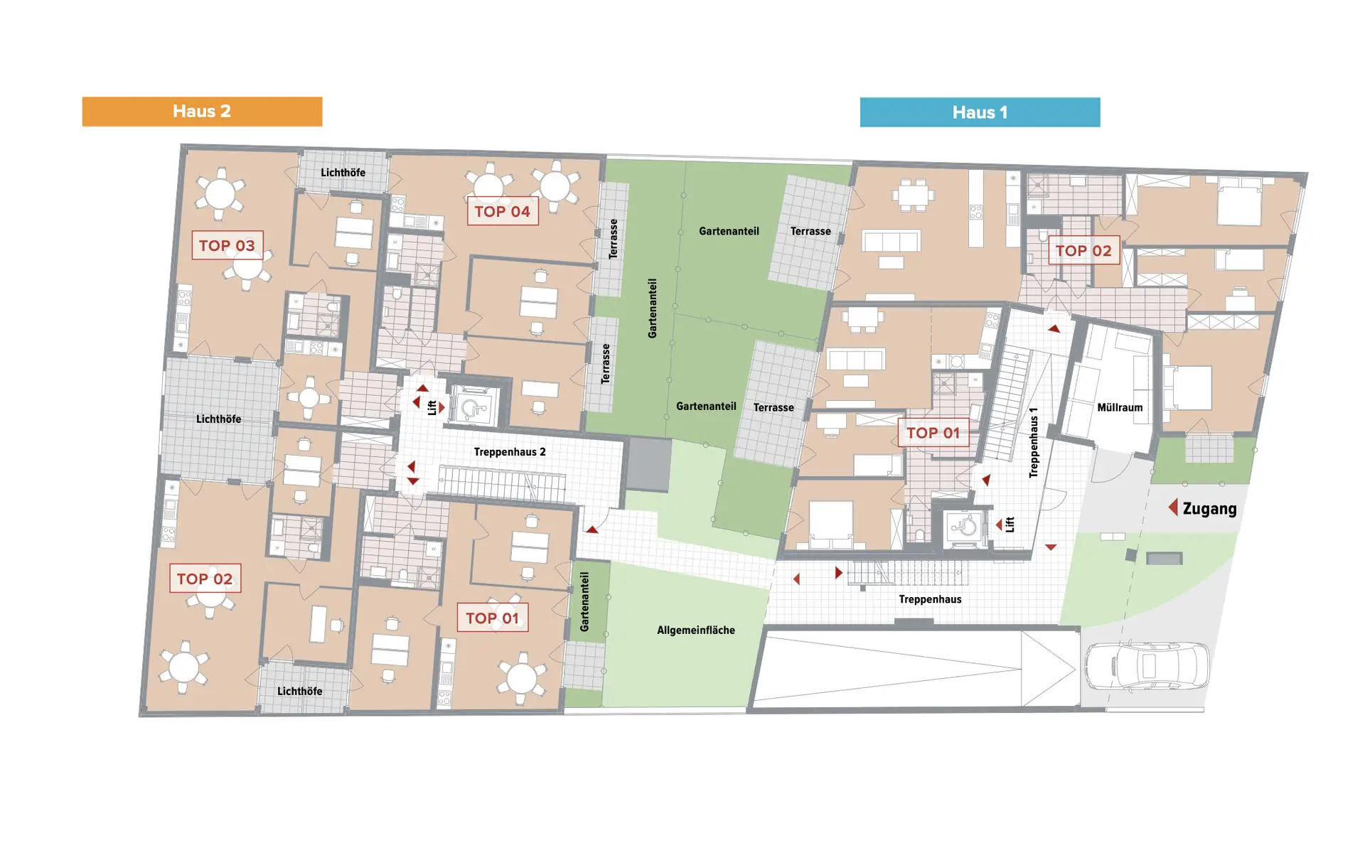 Top 4 in Haus 2 befindet sich im Erdgeschoss und eignet sich ideal als Büro, Praxis oder Ordination.