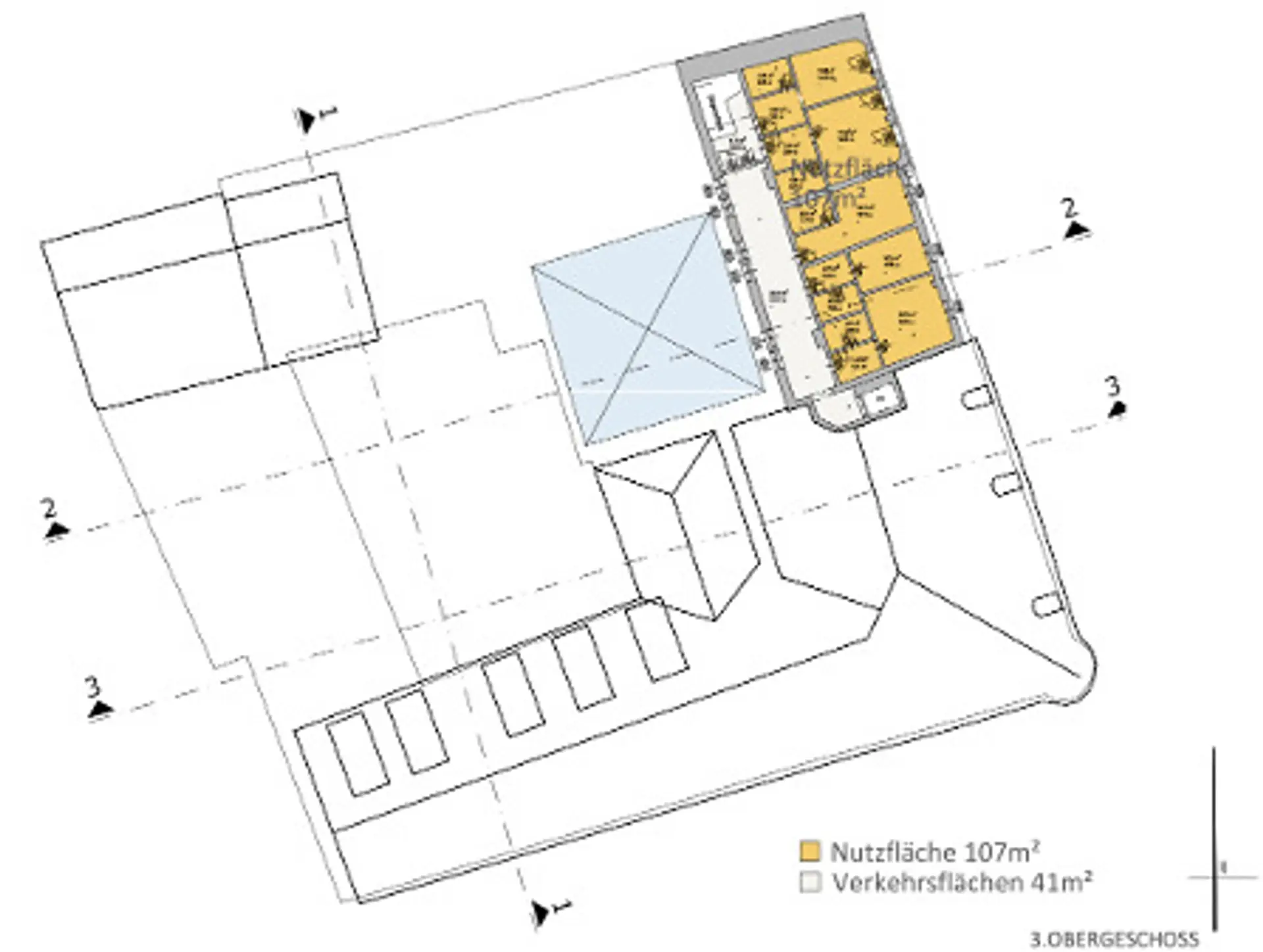 Die Liegenschaft bietet vielseitige Nutzungsmöglichkeiten für Gewerbe, Gastronomie, Wohnen und Hotel. Die ursprünglich erteilte Baubewilligung für zusätzliche 12 Wohnungen ist zwar bereits abgelaufen, kann jedoch laut aktuellem Eigentümer bei Bedarf wiederhergestellt werden.