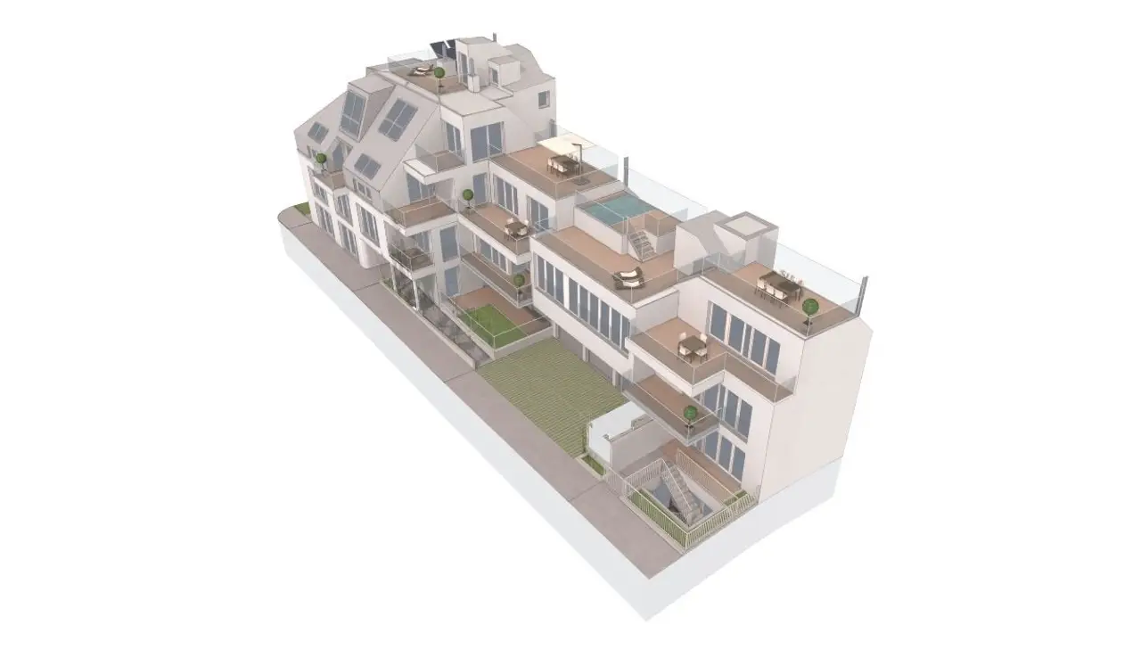Das Neubauprojekt umfasst 7 erstklassige Eigentumswohnungen, die alle über attraktive Balkone und Terrassen verfügen, sowie ein außergewöhnliches Townhouse mit großzügigem Freibereich und eigenem Pool.