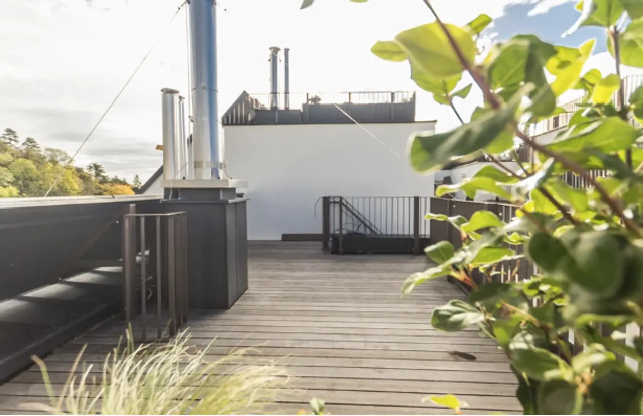 Ein besonderes Highlight bildet die Dachterrasse mit ca. 19,40 m², die gemeinsam mit dem Balkon mit ca. 11,40 m²eine zusätzliche Freifläche von insgesamt ca. 30,80 m² bietet. Von hier aus eröffnet sich ein Blick in die grüne Umgebung von Sievering sowie auf die Weinberge des 19. Bezirks.