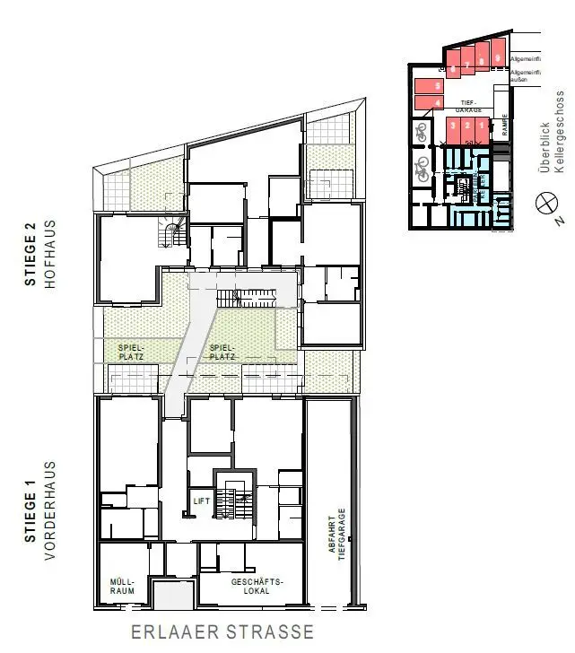 In a quiet side street near Triesterstraße, a well-thought-out residential project with a total of 16 high-quality residential units and a commercial space is being developed. The architecture is divided into a four-story street building and a three-story courtyard building, combining modern design with high living quality.