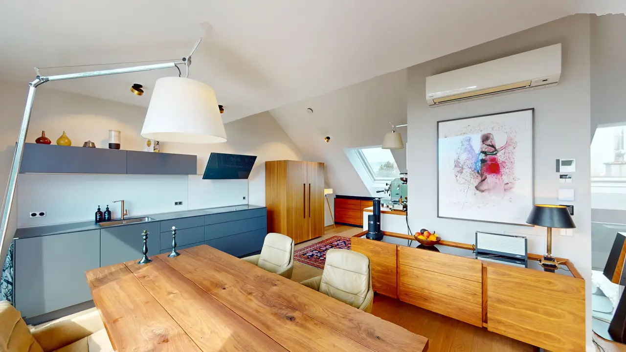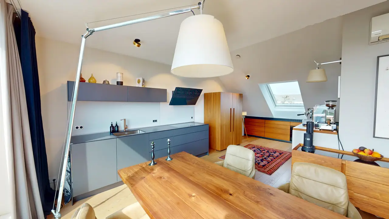 Durante una completa renovación en 2020, se convirtió el ático y se crearon seis exclusivas viviendas en la última planta. La exitosa combinación de encanto histórico y equipamiento de última generación, combinada con materiales de la más alta calidad y el inconfundible encanto de Oberdöbling, convierte a esta residencia en una auténtica rareza.
