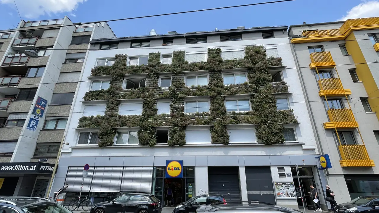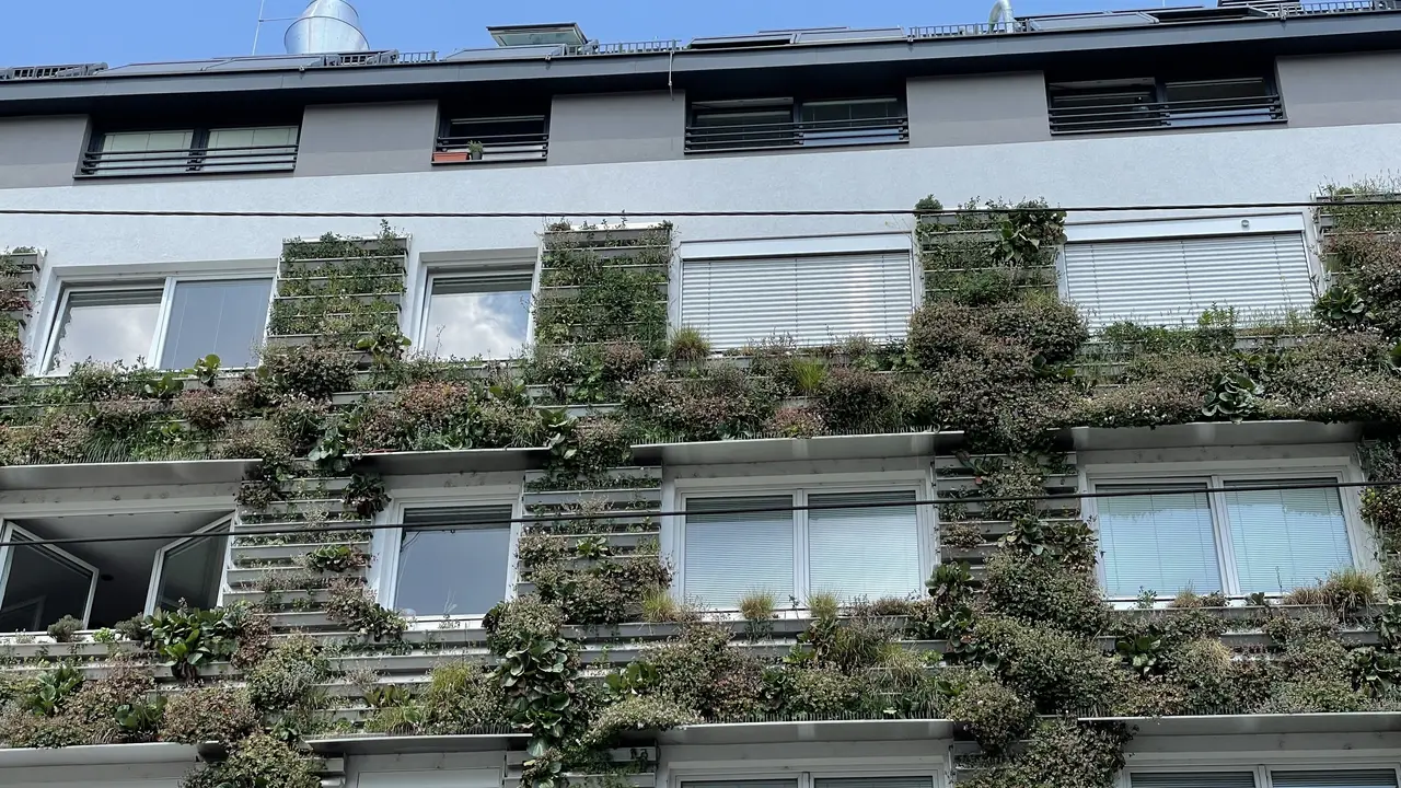 El edificio fue finalizado en 2017 y se encuentra en excelentes condiciones. Cuenta con una fachada moderna y verde que mejora la calidad del aire, filtra de manera óptima el polvo y las partículas finas, y también protege del calor, el frío y el ruido. En el 1º piso con ascensor hay una terraza comunitaria que puede ser utilizada por cada residente del edificio para relajarse o disfrutar del sol. También hay un trastero, así como un espacio para bicicletas y un parque infantil. En el edificio hay un garaje subterráneo, y se puede alquilar una plaza de aparcamiento si es necesario.