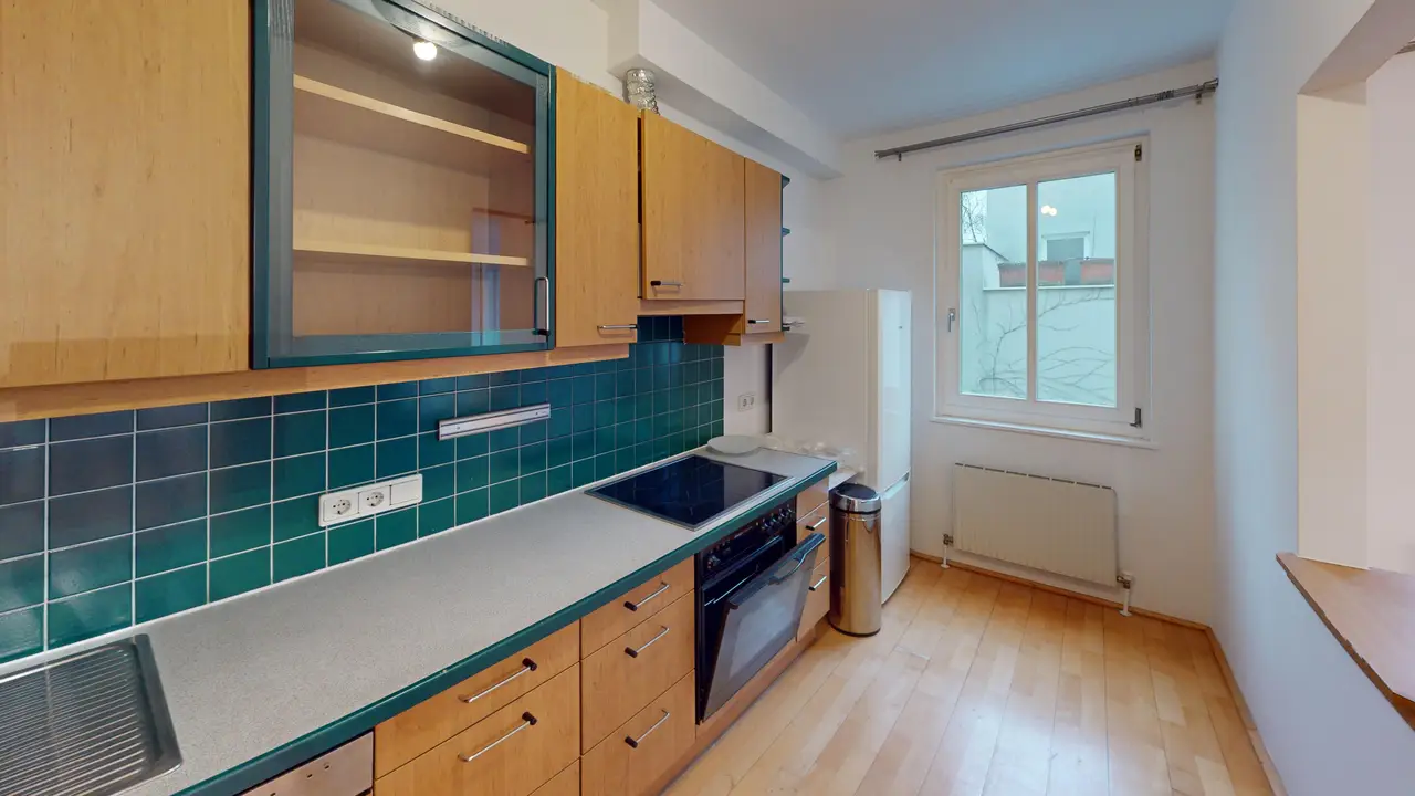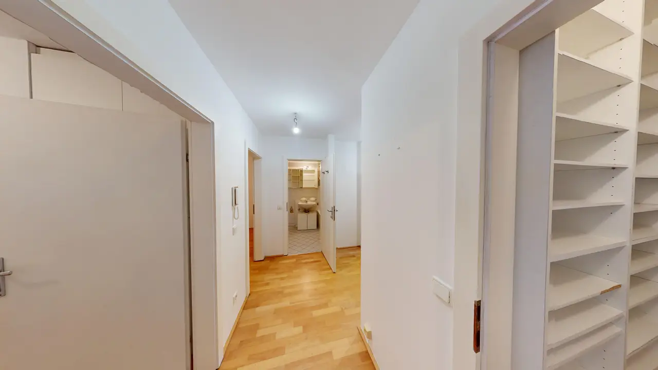 A nappali a lakás szíve, és elegendő helyet biztosít a kellemes órákhoz és a közös együttléthez. A különálló, funkcionális beépített konyha praktikus kialakítású, és harmonikusan illeszkedik az összképbe. A hálószobák csendes helyen találhatóak és ideális visszahúzódási lehetőségeket kínálnak. A fürdőszoba klasszikus és időtlen kialakítású, és egy külön WC egészíti ki, ami plusz kényelmet nyújt a mindennapokban.