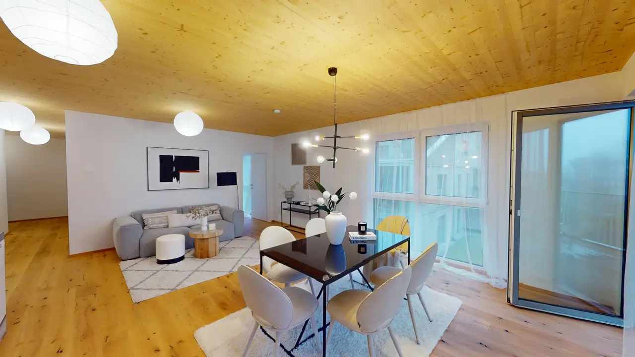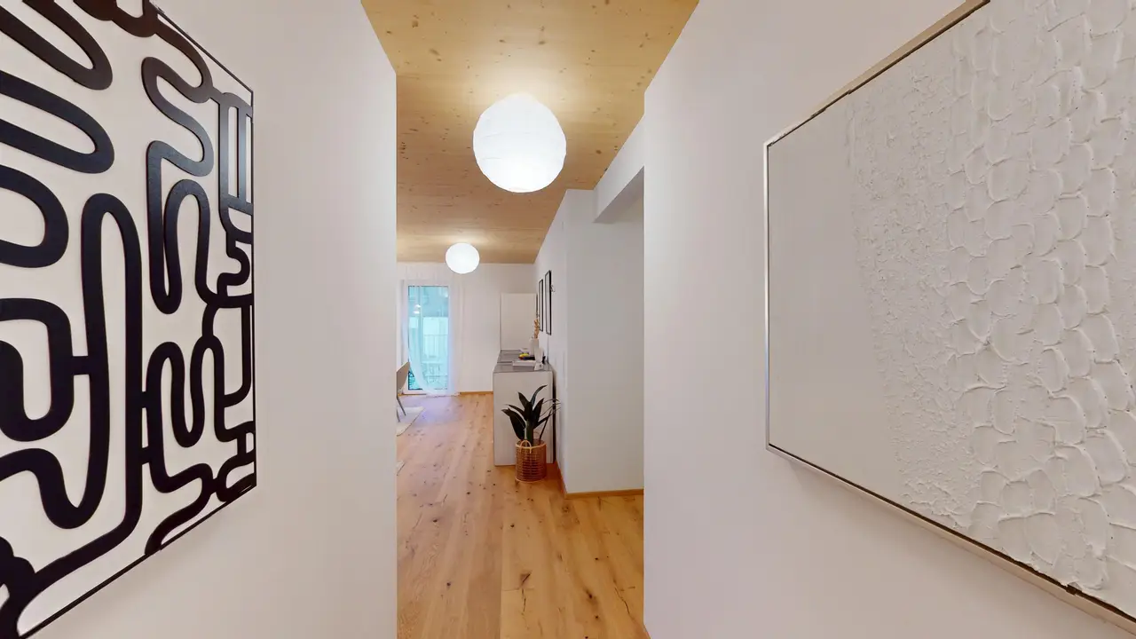 A szóban forgó lakás a 3-as ház első liftes emeletén található, és körülbelül 91 m² alapterületű. Itt egy tágas előszoba, egy nappali konyha előtérrel ellátott balkonnal, három hálószoba, egy fürdőszoba káddal és WC-vel, egy vendég WC és egy tároló áll rendelkezésre.