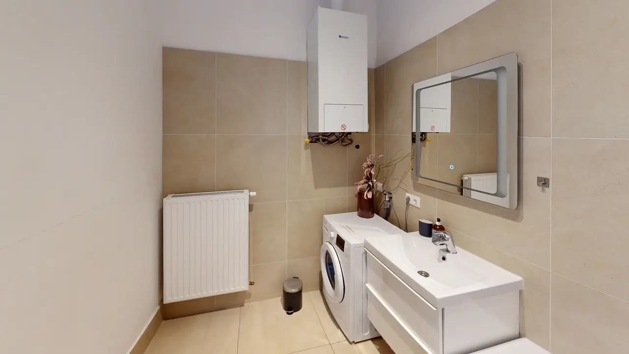 Эта квартира встречает вас просторным холлом, из которого все комнаты имеют отдельные входы. Центральный доступ подчеркивает функциональную планировку и способствует созданию приятной и комфортной жилой атмосферы.