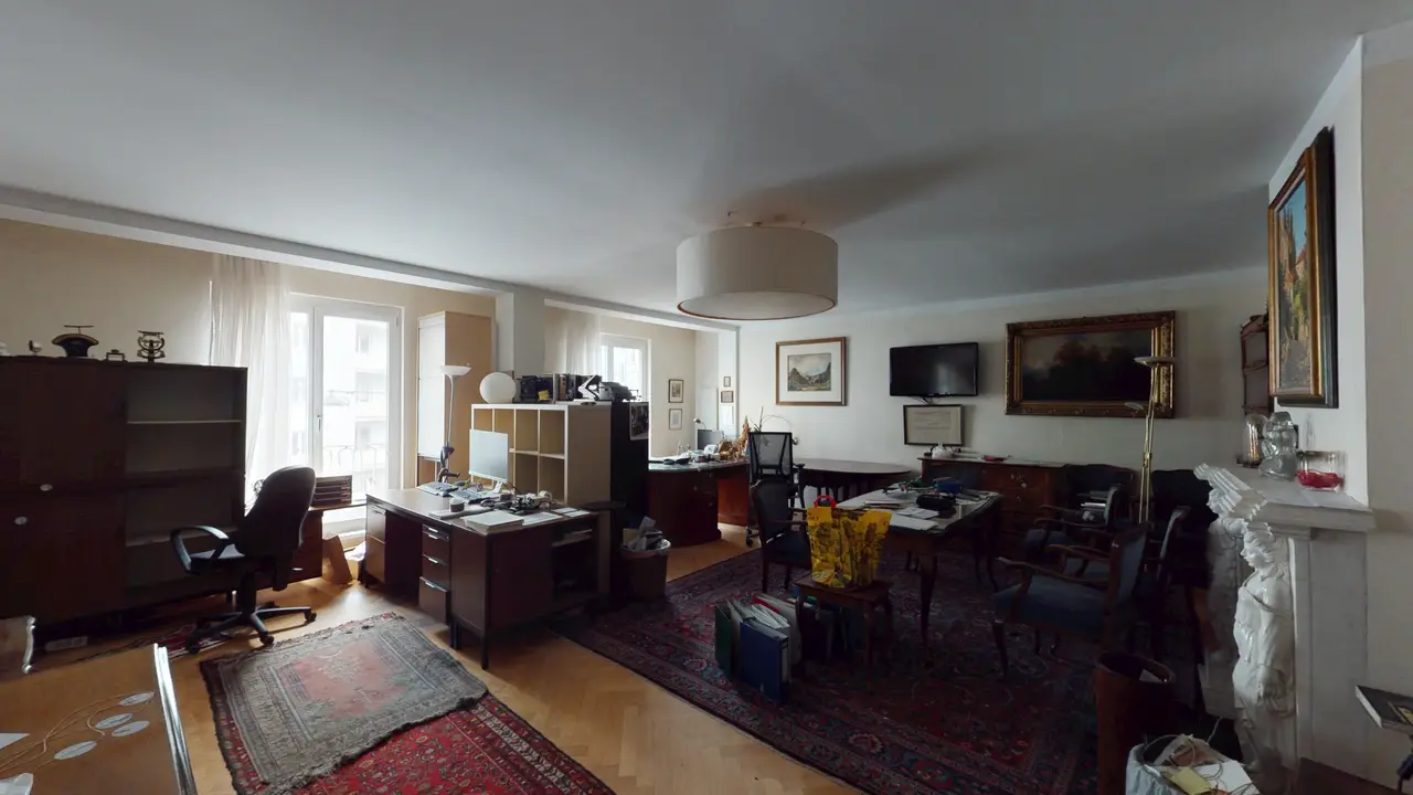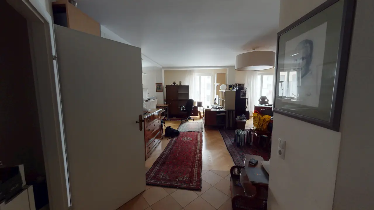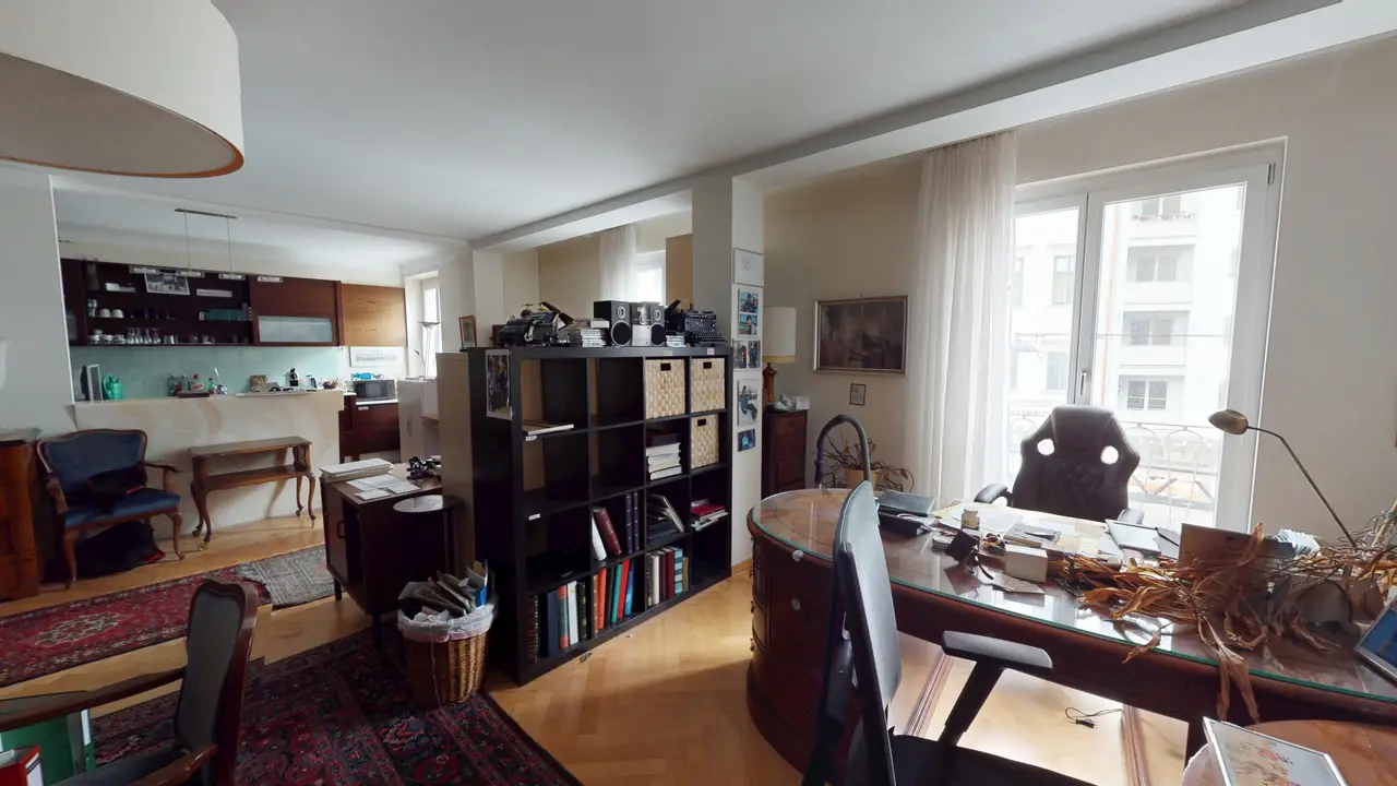 Квартира находится на третьем этаже здания, построенного в 1957 году, и имеет жилую площадь примерно 117 м²