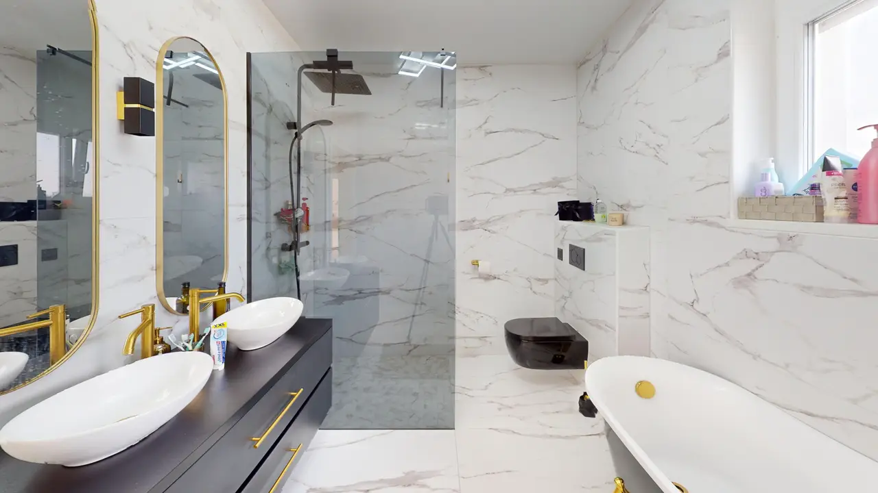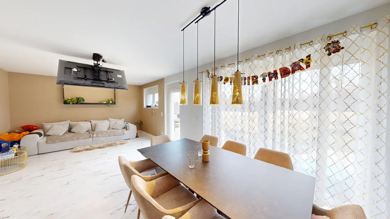 На житловій площі приблизно 138 м² розташовані 5 кімнат, які пропонують різноманітні можливості використання для сімей, домашнього офісу або гостей. Будинок має ванну кімнату з туалетом на верхньому поверсі, а також додатковий гостьовий туалет на першому поверсі. Два практичні комори забезпечують достатньо місця для зберігання.